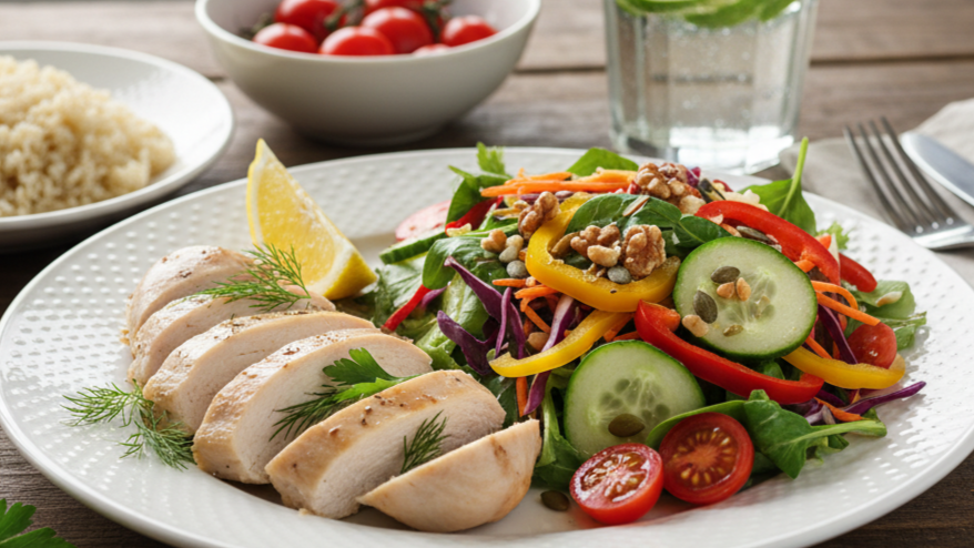 さらに、筋肉の合成をサポートするビタミンB群が豊富な「ブロッコリー」や、抗酸化作用のある「トマト」などを加えれば、栄養価はさらにアップ。ドレッシングはノンオイルのものや、ビネガー系のさっぱりしたものを選ぶと、カロリーをぐっと抑えられます。
